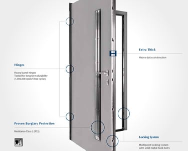 Zusatzschlösser, Panzerriegel oder Sicherheitsbeschläge erhöhen den Widerstand gegen gewaltsames Eindringen.