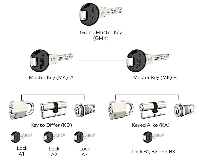 Hauptschlüssel, Gruppenschlüssel oder Einzelschlüssel – abhängig von Objektstruktur.